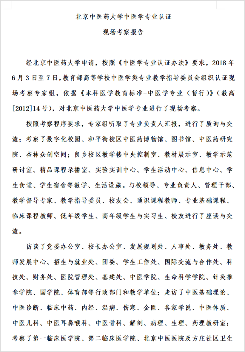 2.3成果形成效果——在中医学专业认证中的获得肯定