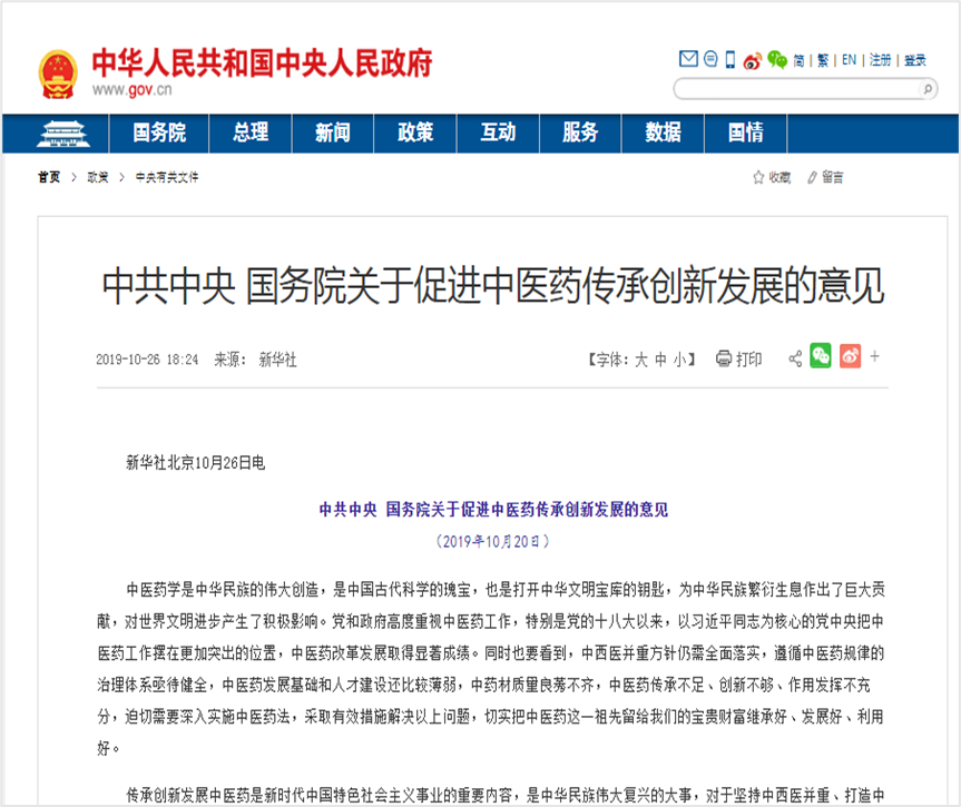 1.《中共中央 国务院关于促进中医药传承创新发展的意见》